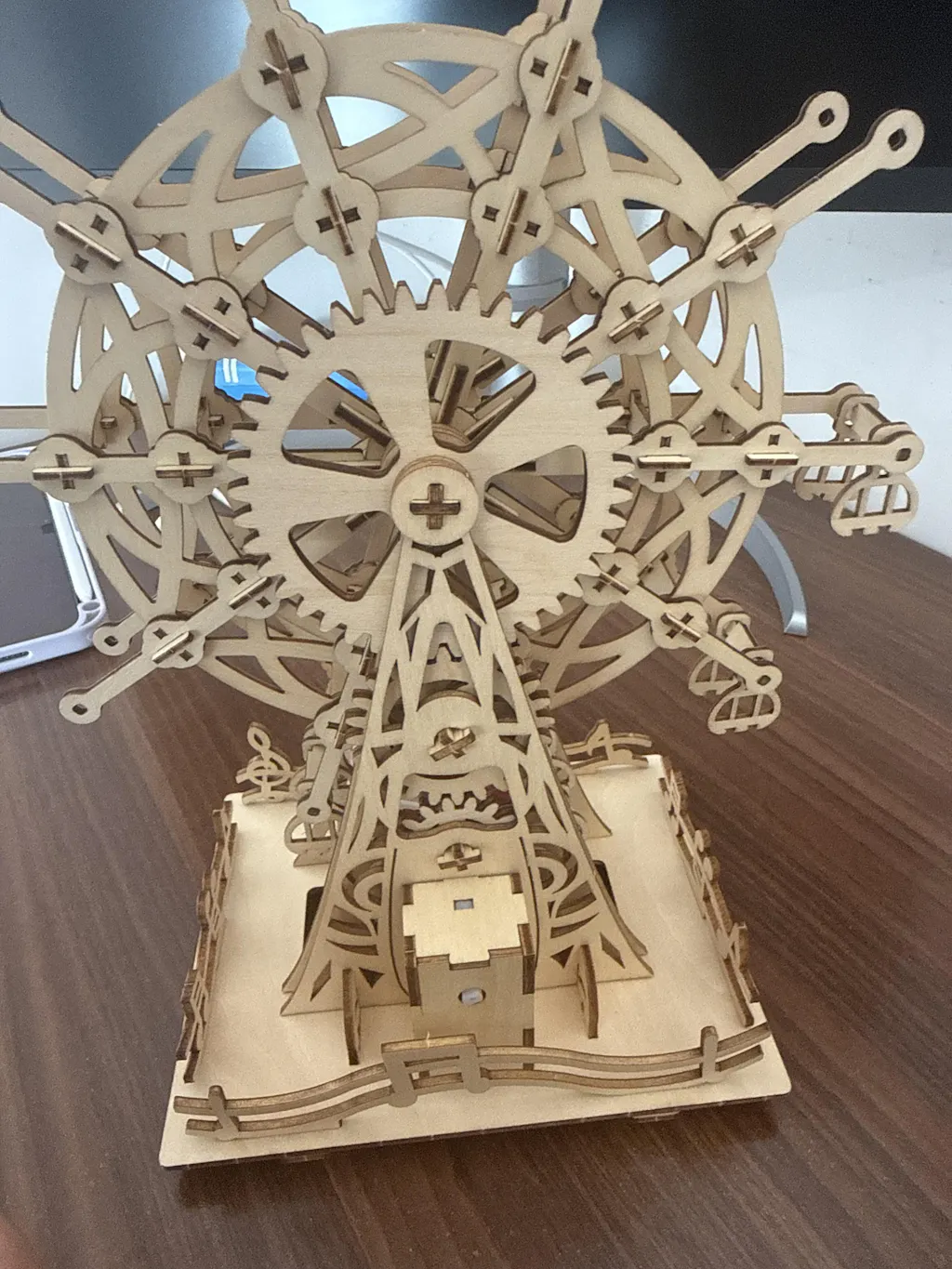 Wooden Puzzle Pieces, Instruction Manual, Motor, Battery Case, Solar Panel, Wax