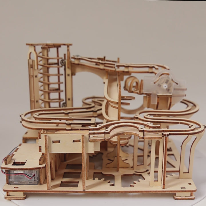 Wooden Puzzle Pieces, Instruction Manual, Motor, Battery Case, Steel Marbles, Steel Rods, Shaft Sleeves